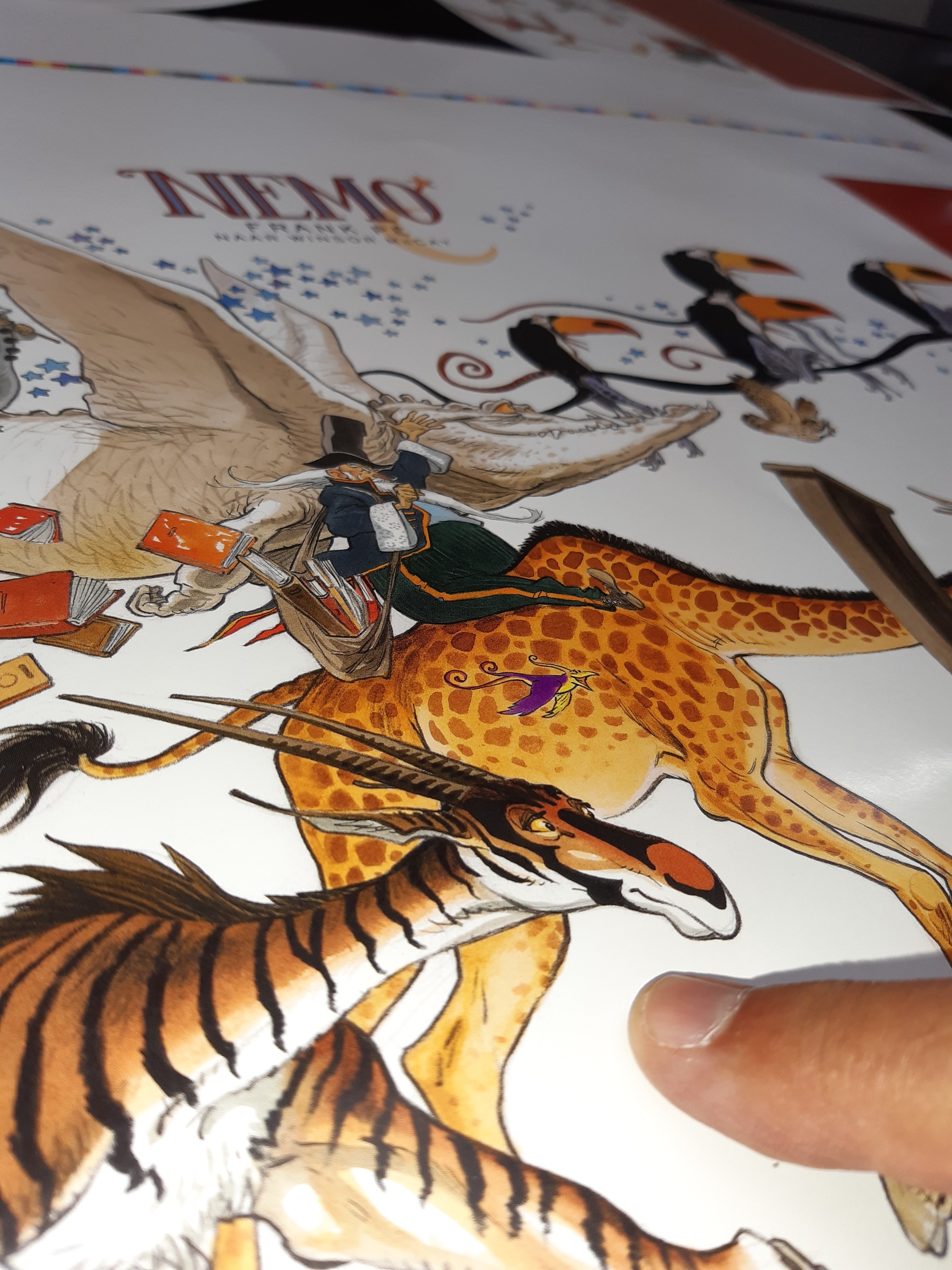 Des photos prises lors de l'impression du Little Nemo à paraître chez Dupuis. L'album, qui regroupe les 2 éditions de luxes édités jadis par Toth, sortira fin août chez Dupuis, avec une nouvelle maquette, un poster inclus et des couleurs nettement améliorées ( nouveaux scans ) ! Il y aura aussi une version en néerlandais.