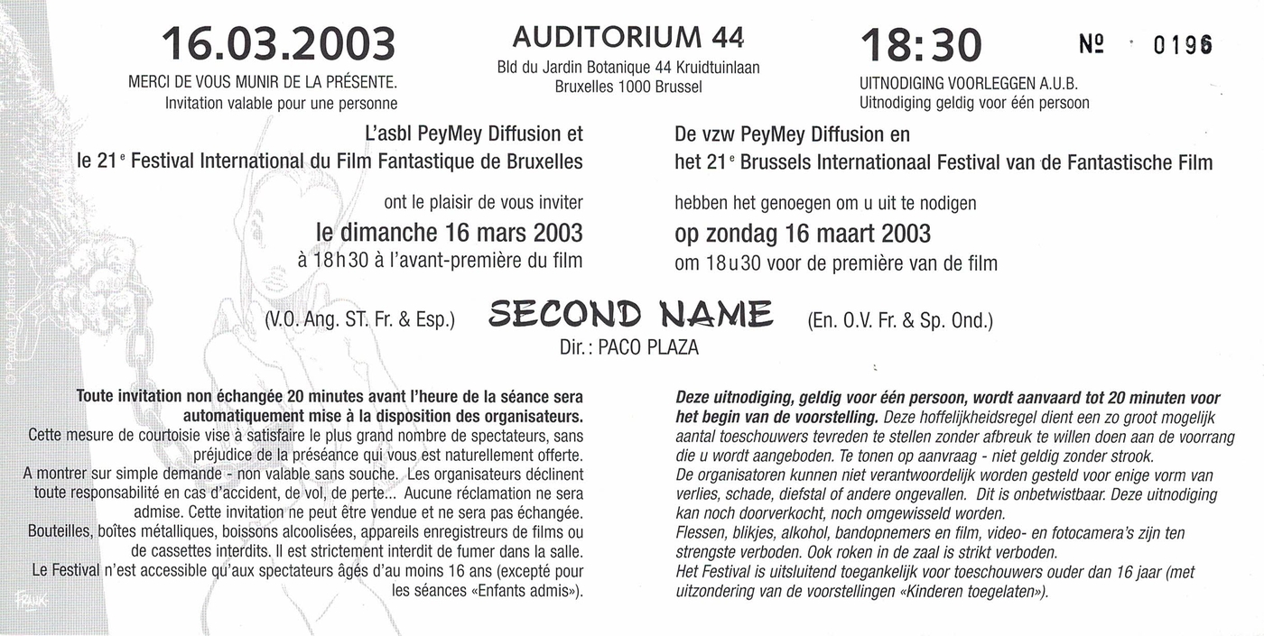 • Origine: Brussels International Festival of Fantasy Film