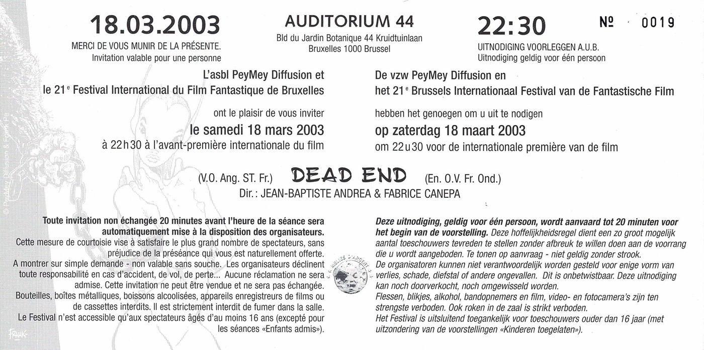 - Origine: Brussels International Festival of Fantasy Film