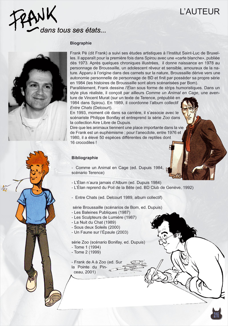 Nous vous proposons un panorama des oeuvres de Frank en 16 planches, créées par l'association "On a marché sur la Bulle" d'Amiens en octobre 2003, dans le cadre d'une exposition à la bibliothèque départementale de la Somme.