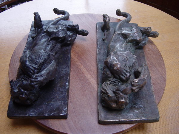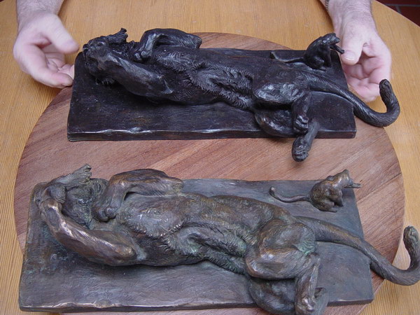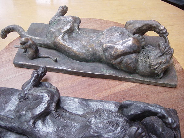 Félins se léchant la patte - nouvelle patine
