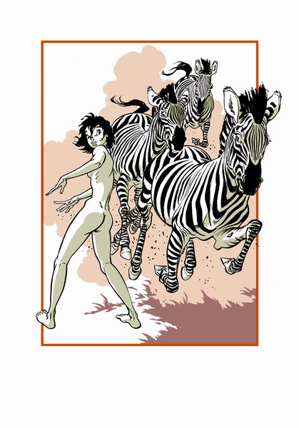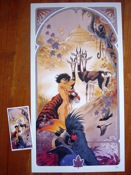 Visuel du dessin pour Champaka, Ex-libiris offert par le BD FUGUE café d'Annecy à l'achat du tome 3 de Zoo, Sérigraphie éditée par Eric Marin