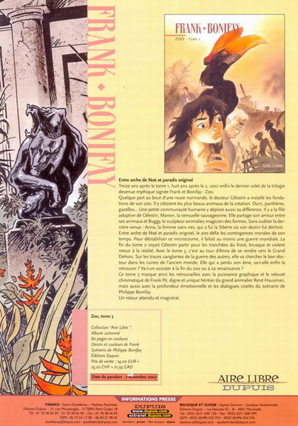 Cette page a pour but de vous fournir toutes les informations relatives à la sortie du troisième tome de la série Zoo dont la sortie est prévue pour le 7 novembre 2007.