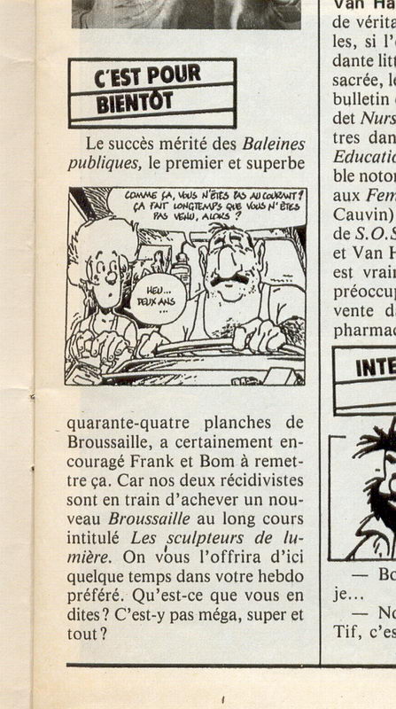 • Description: Broussaille annonce "Les sculpteurs de lumière" 1 illustration + L'Elan strip n° 256